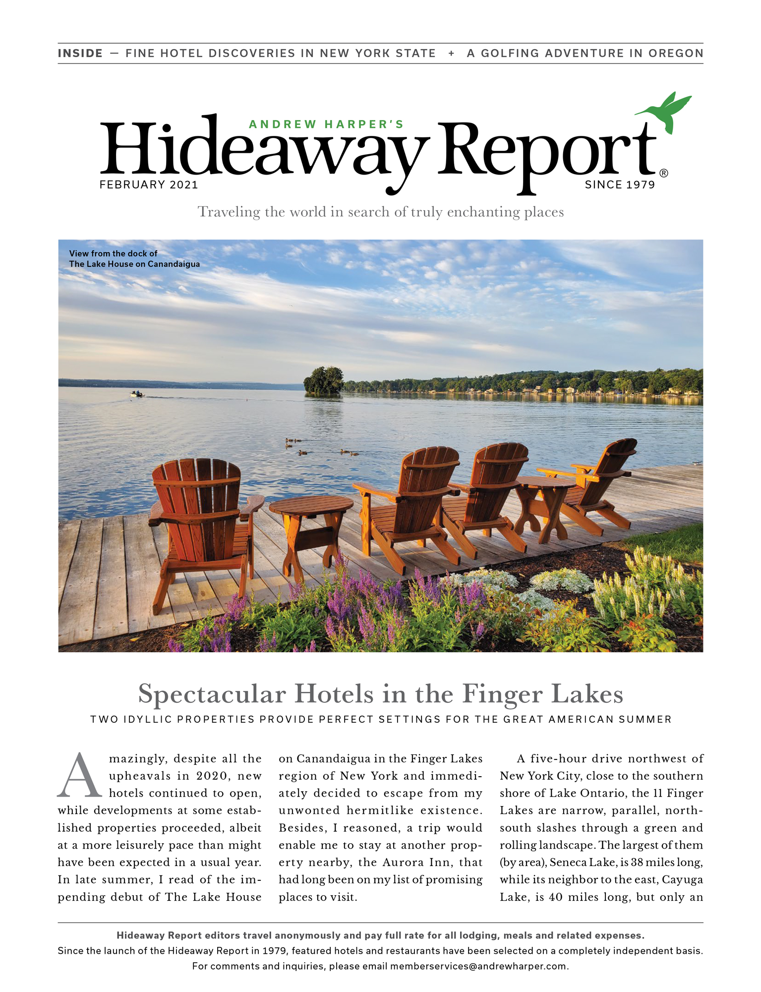 Andrew Harper’s Hideaway Report exists to help interested folks take “the trips less traveled” by highlighting exemplary food and wines, gatherings, activities, and places. And, in a true discovery-based fashion, the editors of the Hideaway Report travel incognito and review properties anonymously.